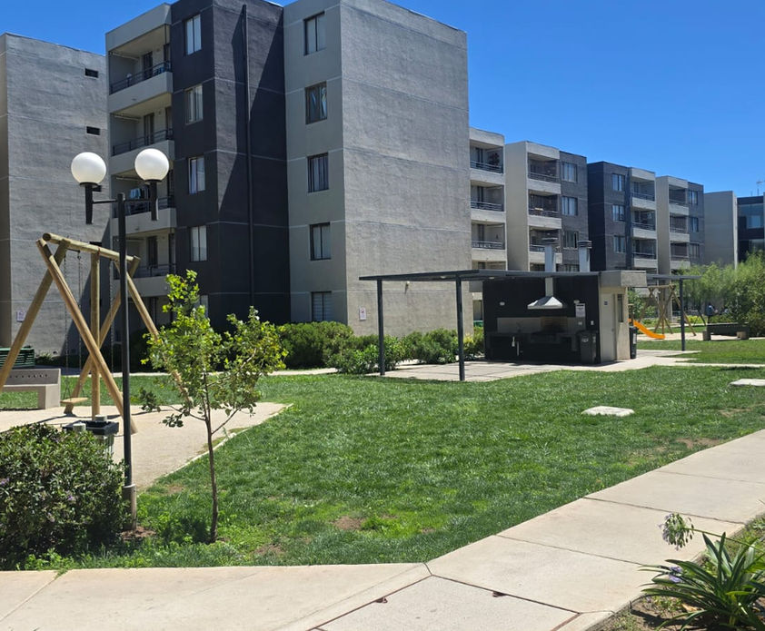 Apartment for rent in San Alberto Condominium, Parque Padre Hurtado, in the commune of Padre Hurtado. It is located 5 minutes from the Autopista del Sol highway exit, close to Laguna del Sol and one block from Camino Melipilla.